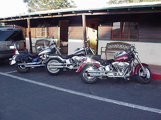 When we arrived at Tombstone, we stayed at the Larian Motel. This is the bikes in front of our room. This motel has great beds. I slept like a baby that night.