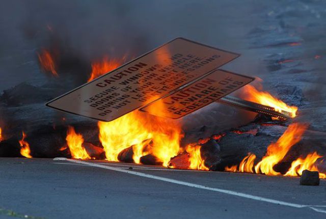 This unusual volcano is located on Hawaii. Its name is Kilauea. It has been erupting since 1983. Lava from Kilauea has been destroying numerous homes for many years in a row. It has managed to scare local residents away. And you can now see images of this volcano from the past 27 years.