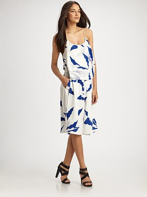 during their Access Hollywood shoot. Modern and sophisticated, an abstract print emboldens this billowy silk silhouette.